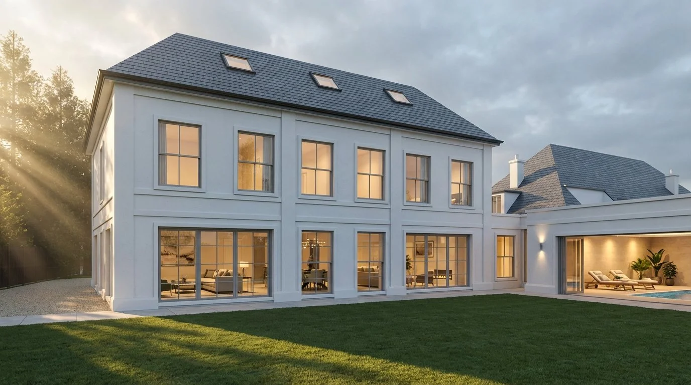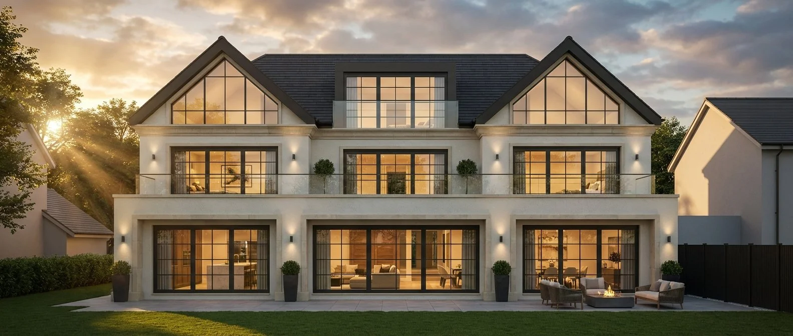 A high-end residential development emerging from a substantial plot originally occupied by a single property. This scheme reimagines the site into two bespoke luxury villas, designed by Novus Haus to blend timeless classical elegance with contemporary lifestyle features. Each residence has been thoughtfully positioned to maximise privacy, presence, and value—marking a new benchmark for architectural quality in the Bowdon area.