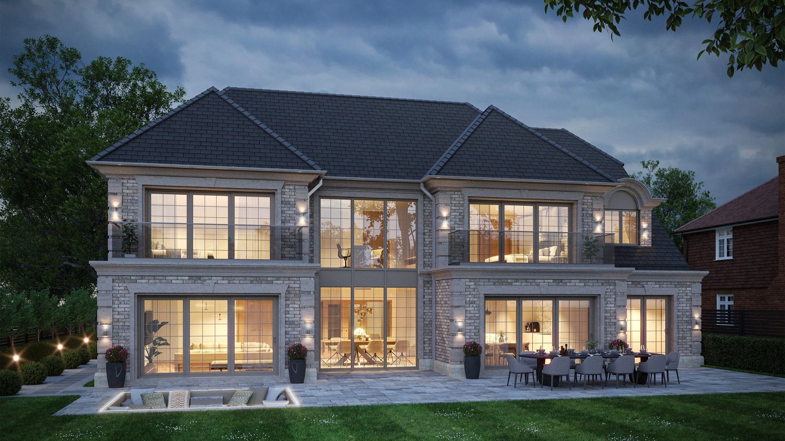 The design maximises the site’s depth and garden setting, with generous glazing and carefully considered massing to enhance natural light, outlook, and indoor–outdoor living. The scheme demonstrates a sensitive yet ambitious approach to large-scale residential redevelopment, elevating the character and presence of the property while remaining appropriate to its surroundings.